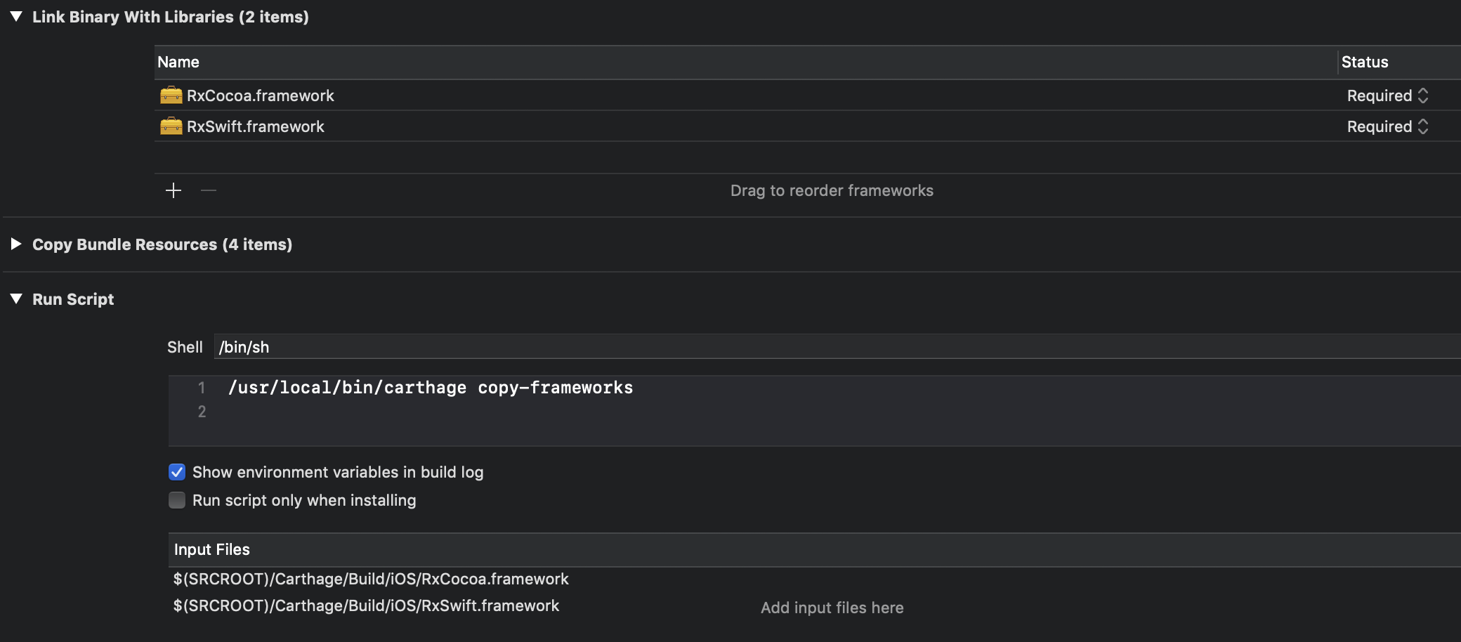 요즘 내가제일 많이 쓰는 Cartago 로 RXSwift.framework , RXCocoa.framework 두가지를 import 한다! -> 요거는 굳이 설명 안해도 될듯